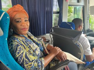 “ C’est où le prochain arrêt ?”, demande Sikinidi, une habitante de Sada. “Le prochain, c’est collège de Sada”, répond en souriant Fahania Moindze. La jeune femme vêtue d’un voile noir est médiatrice du bus. Installée à l’avant, elle accompagne les passagers à leur montée pour les renseigner sur l’itinéraire et toutes les informations à savoir.