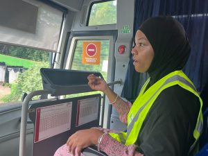 La médiatrice Fahania Moindze accompagne les passagers pour leur expliquer le fonctionnement.