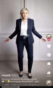 À Mayotte, les usages liés aux technologies numériques et à l’intelligence artificielle prennent des formes particulières, fortement structurées par les réseaux sociaux, notamment TikTok et Facebook, où les contenus circulent, se transforment et sont rapidement réappropriés. En effet, on retrouve la réutilisation d’images ou de vidéos de personnalités publiques locales ou nationales, intégrées à des montages ou à des tendances virales, parfois détournées pour produire de nouveaux contenus. Comme des vidéos montrant le président de la République dansant le Chigoma, une danse traditionnelle mahoraise. Ces pratiques de détournement et de création autour de l’IA sur les réseaux sociaux ne sont pas propres à Mayotte et se retrouvent également en métropole, où elles alimentent des contenus viraux similaires sur les plateformes.