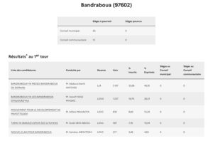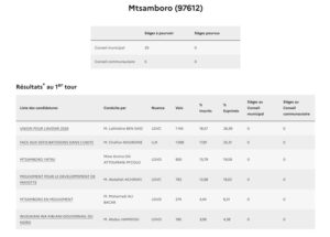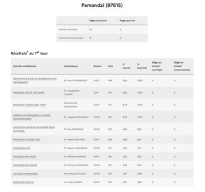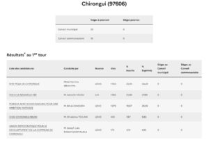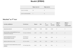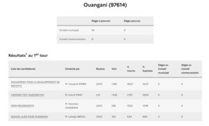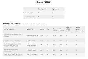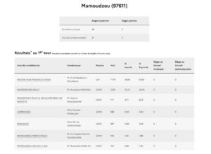 Si le taux de participation consolidé à Mayotte n’était pas encore connu à l’heure où nous publions les premiers résultats, le score à 17h, 58,20%, était bien meilleur que six ans auparavant quand 49,75% des électeurs mahorais avaient bravé le début d’épidémie de Covid. Prés de 10 points de plus, signe d’un regain d’intérêt pour la chose politique à Mayotte où les cadors sont challengés par des petits jeunes. Il serait également supérieur à celui de la métropole où l’interdiction de panachage dans les listes (rature d’un candidat) aurait refroidi plus d’un électeur.
